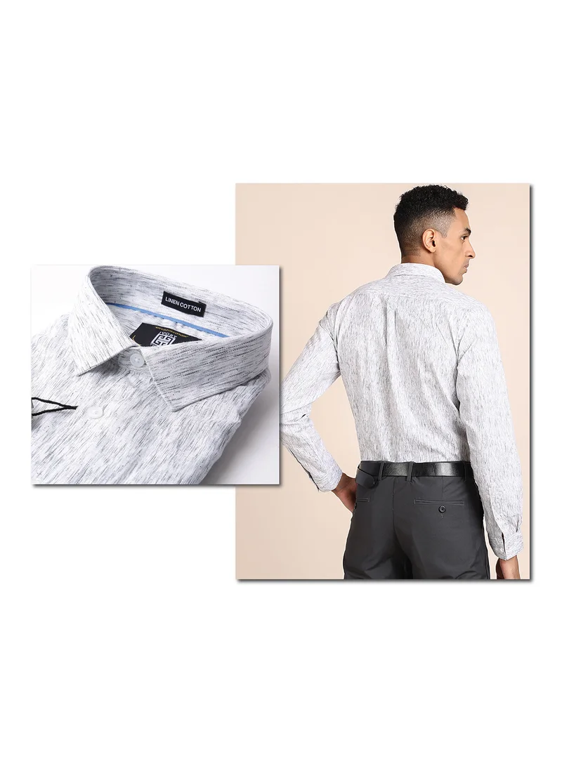 Classic Printed Semi Cutaway Collared Formal Shirt White