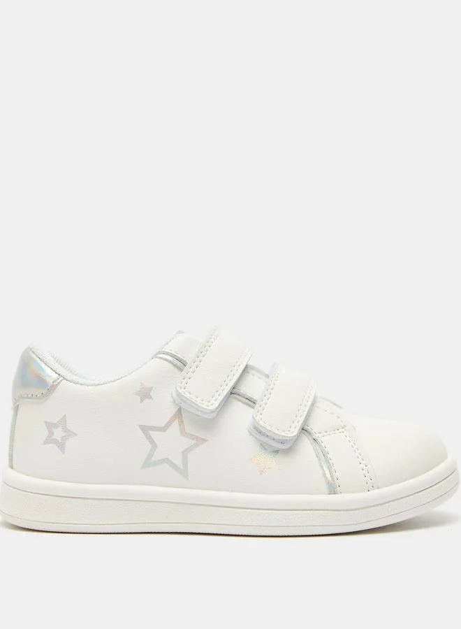 Star Print Sneakers with Hook and Loop Closure