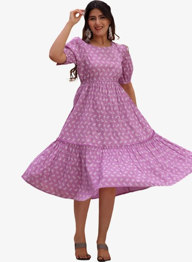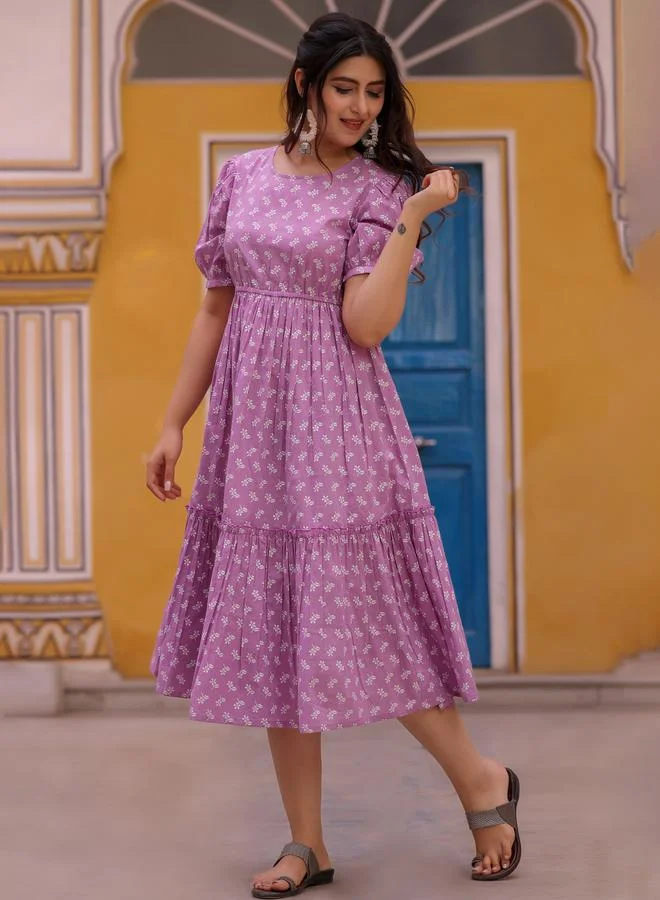 Lavender Cotton Floral Printed Tiered Dress