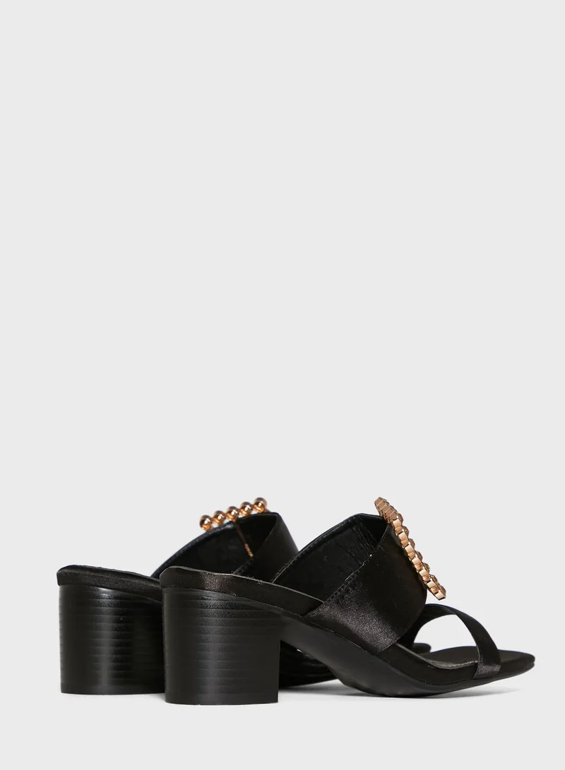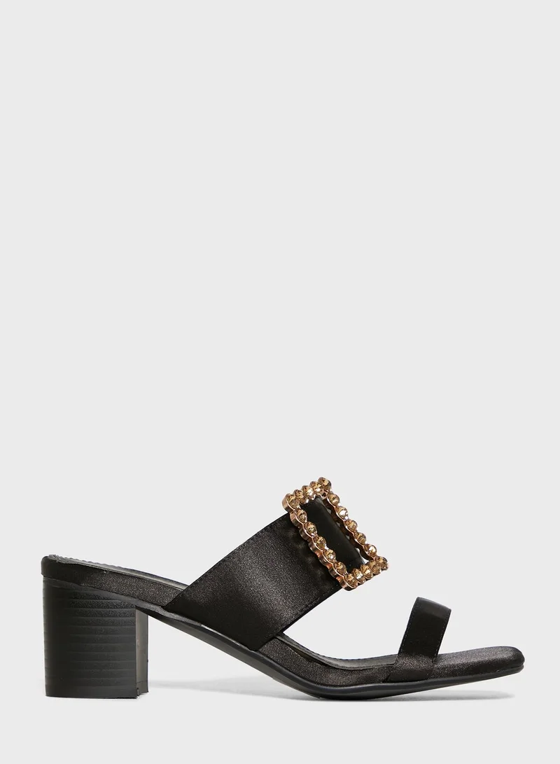 Add a pop of style with this buckle detail block-heels for a modern and effortlessly edgy look.