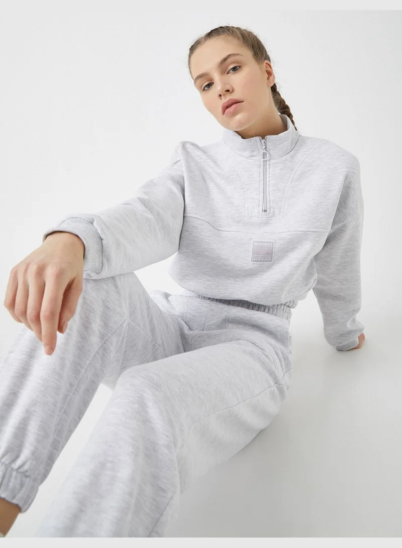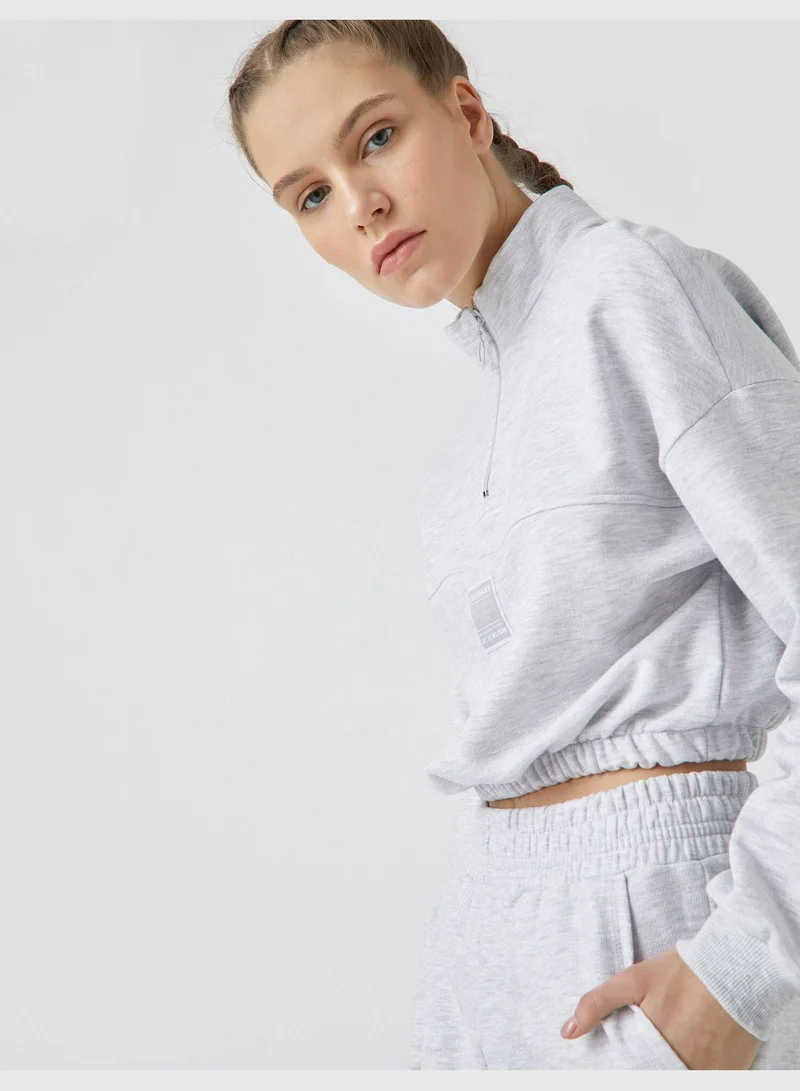 KOTON 100% Cotton Stand Neck Slogan Crop Sweatshirt