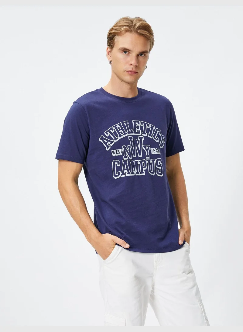 KOTON College Printed Crew Neck Short Sleeve Cotton T-Shirt