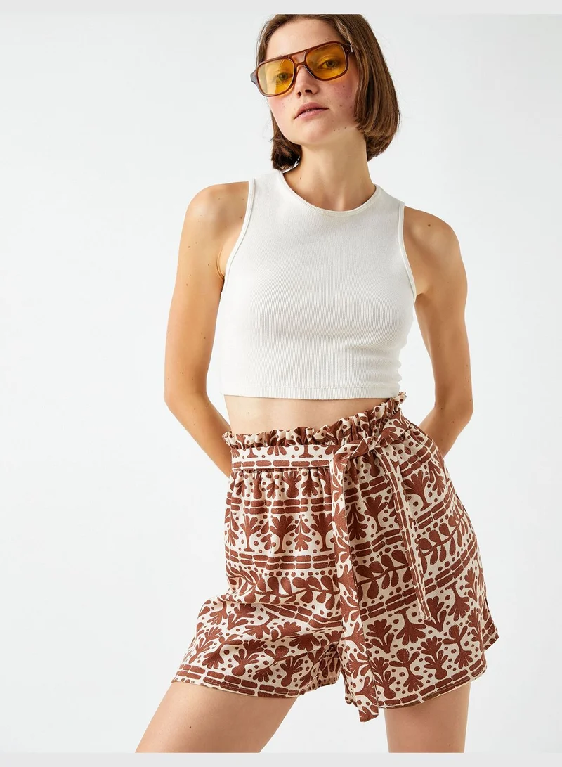 KOTON Elastic Waist Belt Detail Shorts