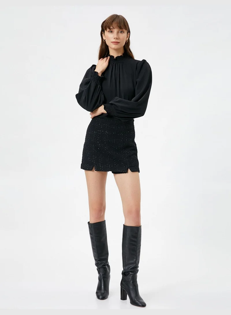 KOTON Glitter Slit Detail Tweed Skort