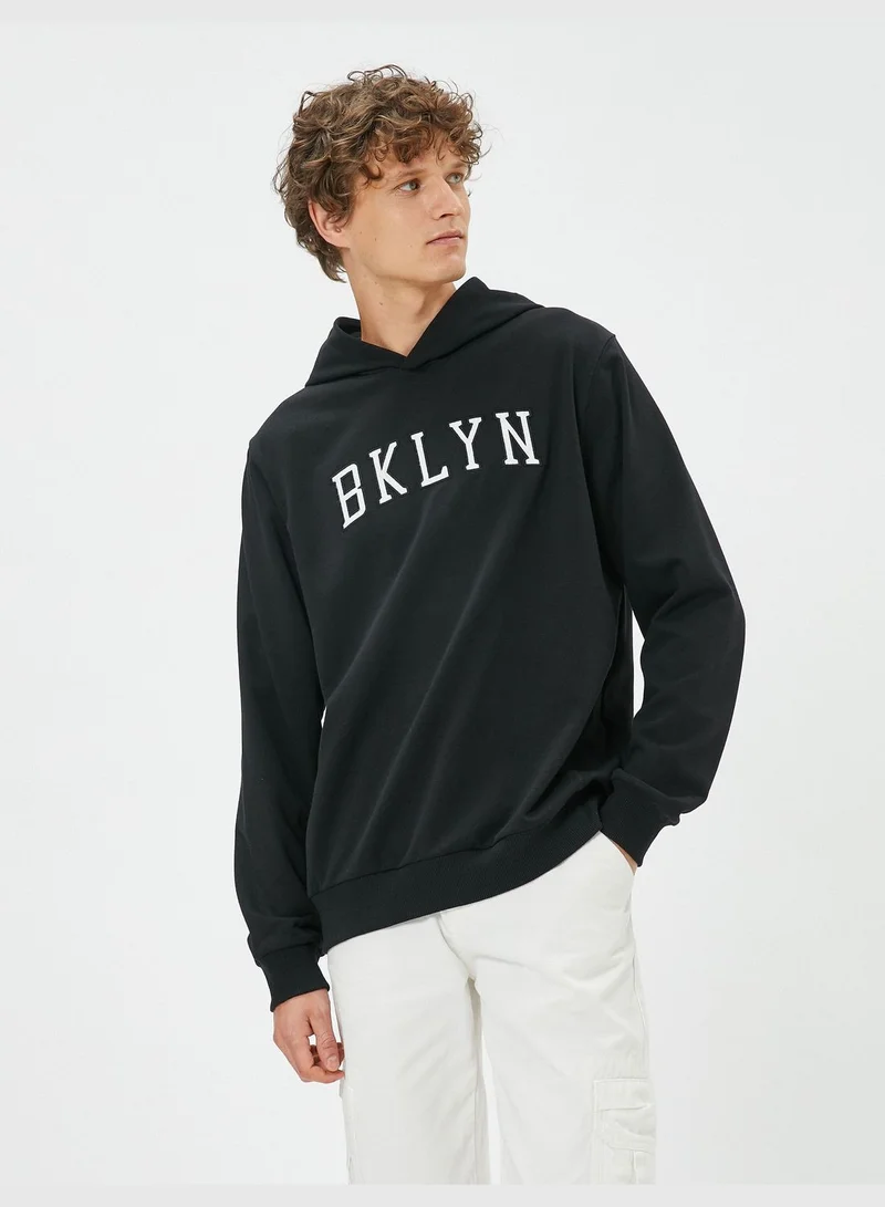 KOTON Hooded Slogan Embroidered Long Sleeve Sweat