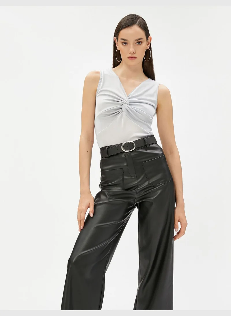 KOTON Knot Detail V Neck Sleeveless Tank Top