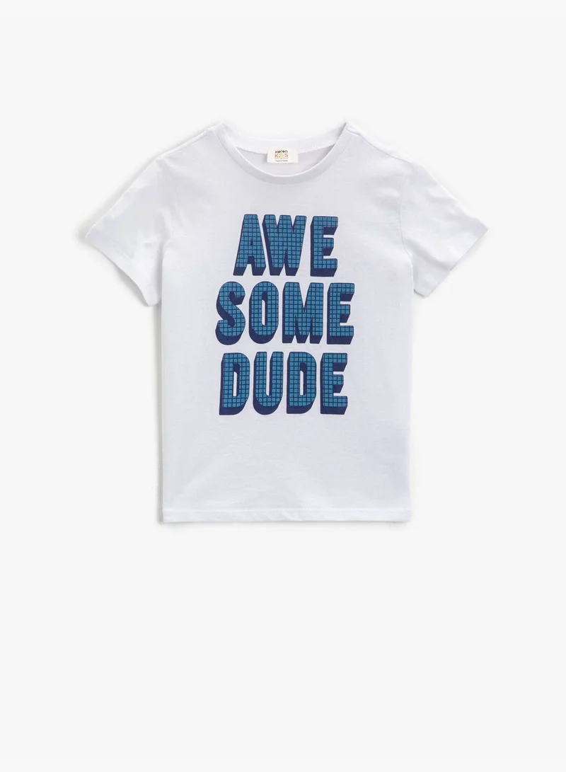 KOTON Letter T-Shirt Crew Neck Short Sleeve Cotton