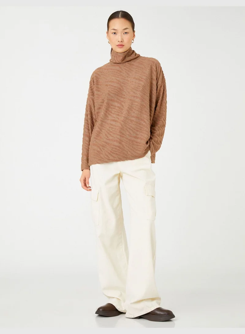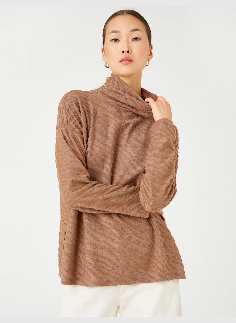 KOTON Long Sleeve T-Shirt Turtleneck Plush Detail