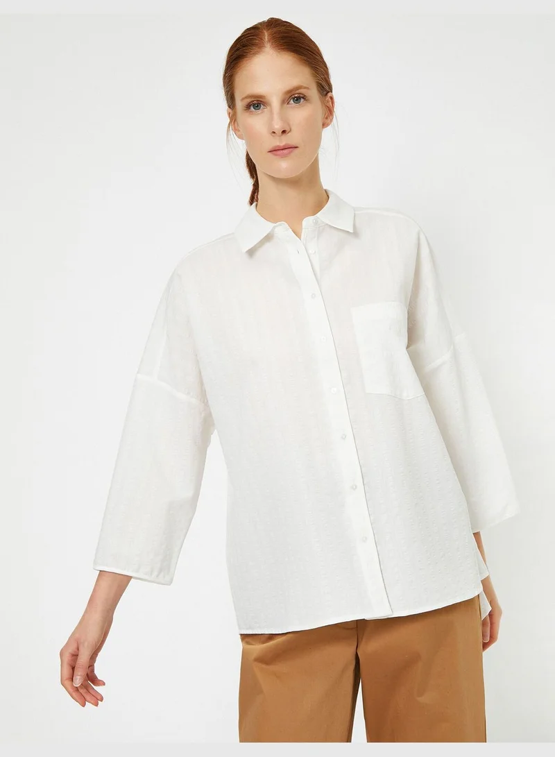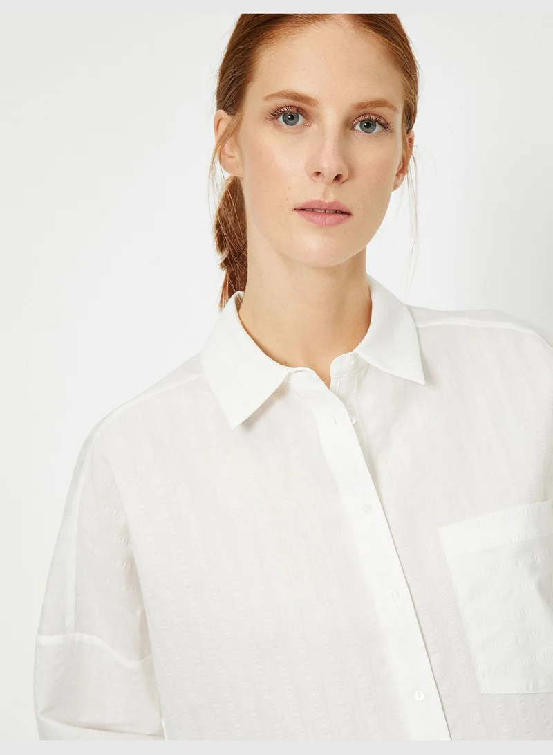 Classic Neck, Long Sleeve, Button Detailed, Pocket Detailed Shirt