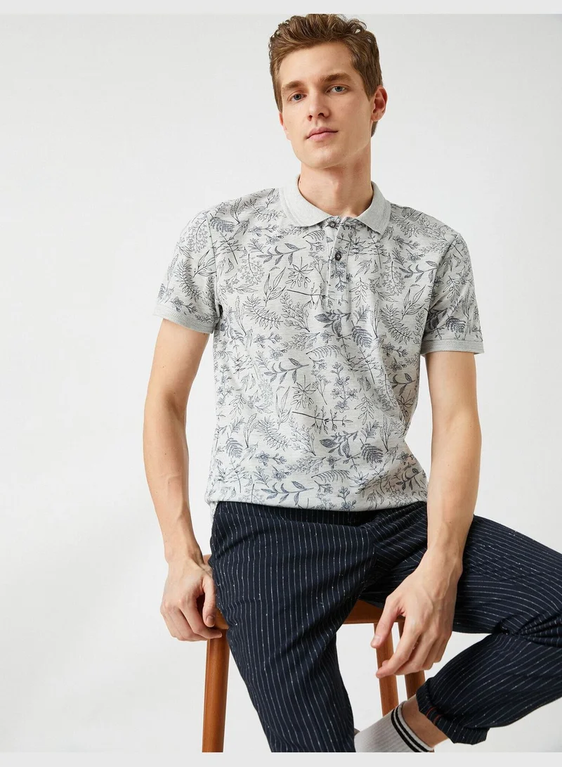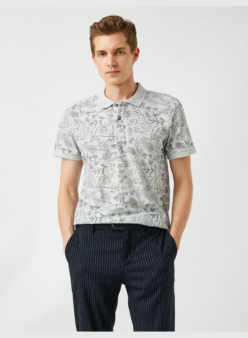 KOTON Polo Neck T-Shirt Leaf Patterned