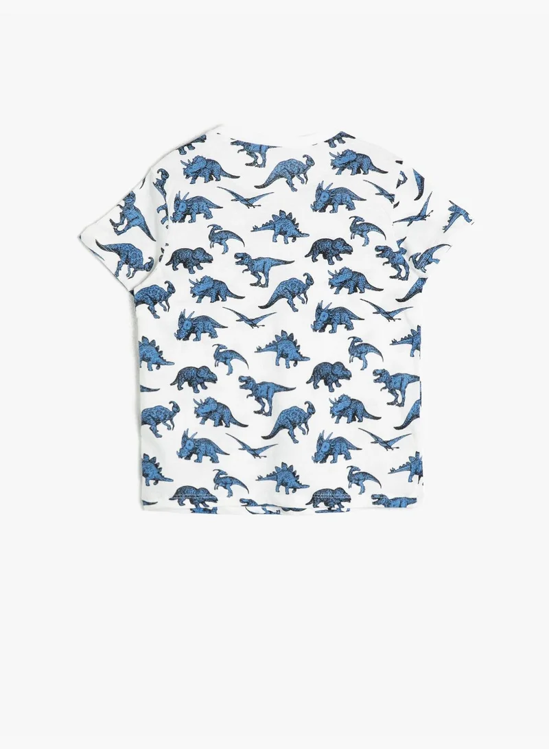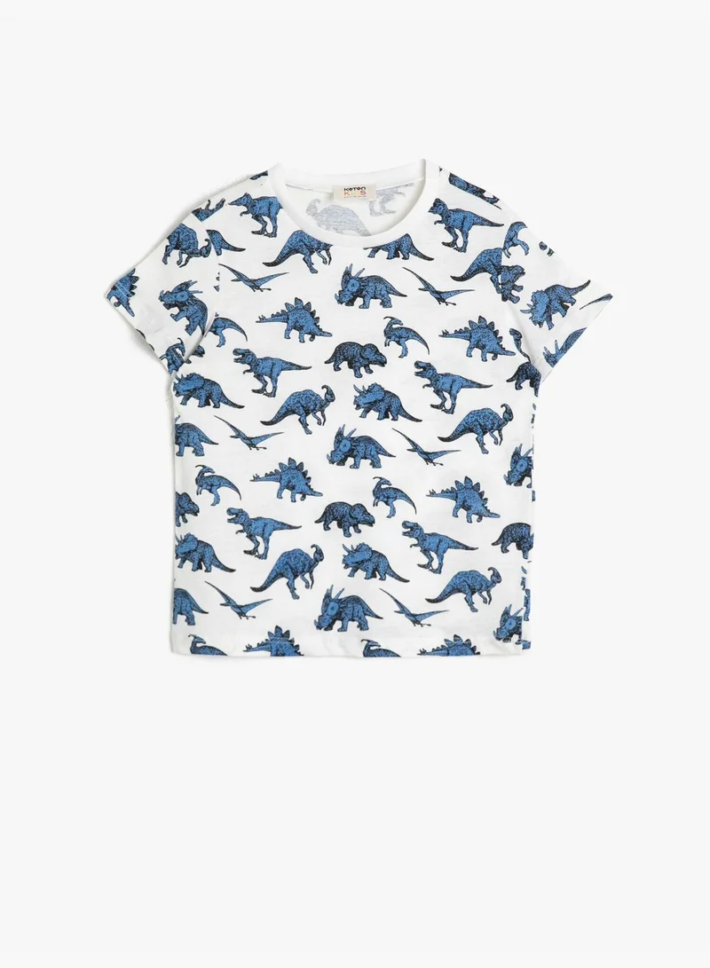 Baskılı Pamuklu Kısa Kollu Bisiklet Yaka Tişört