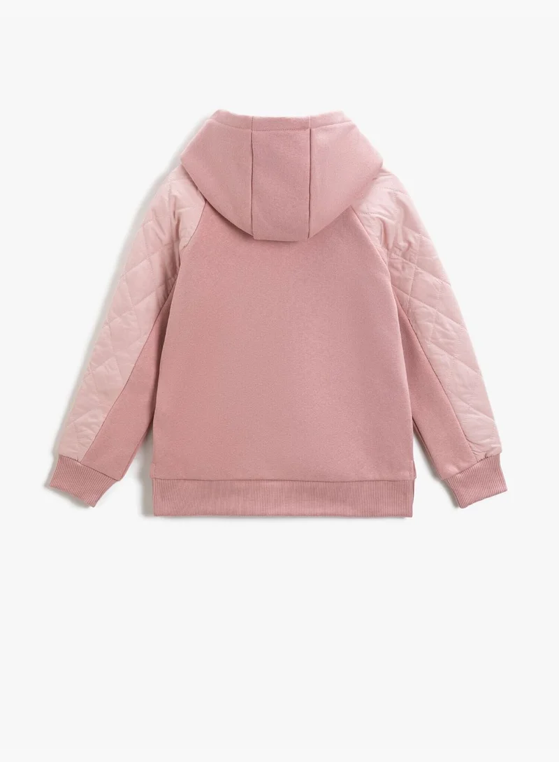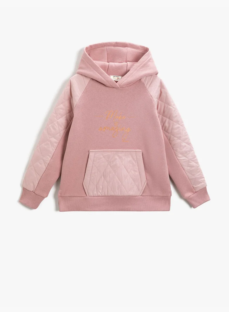 KOTON Quilted Printed Hooded Sweatshirt Kangaroo Pocket Cotton