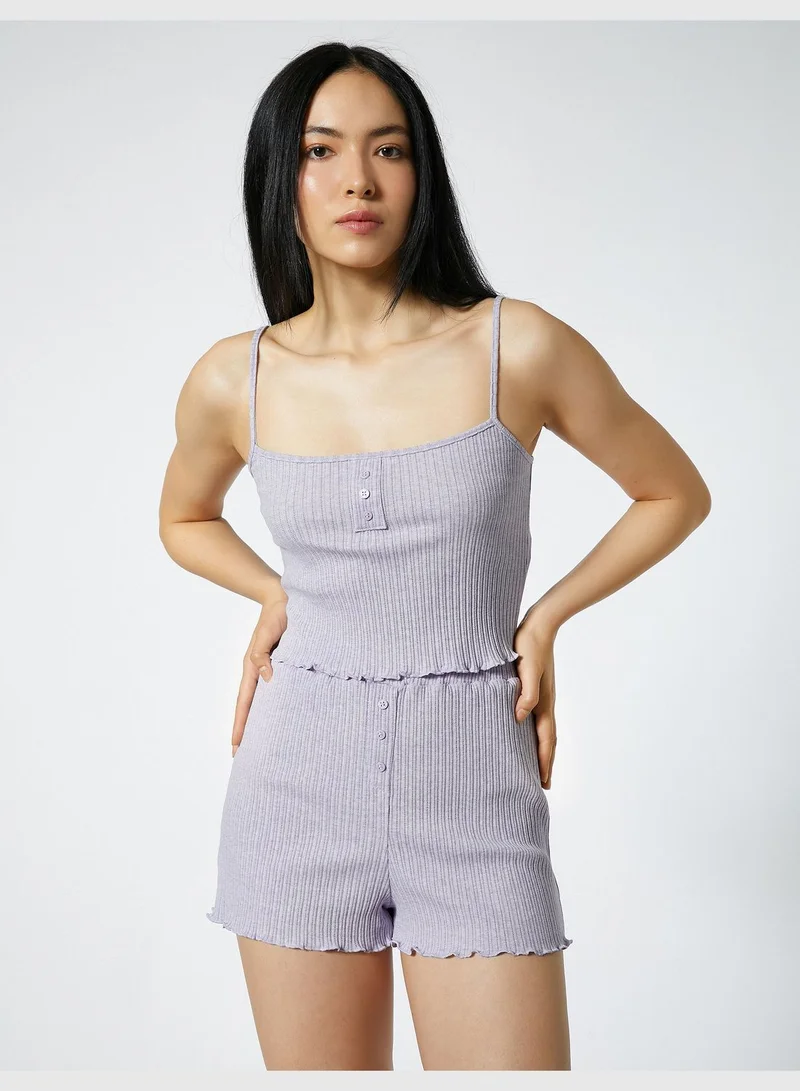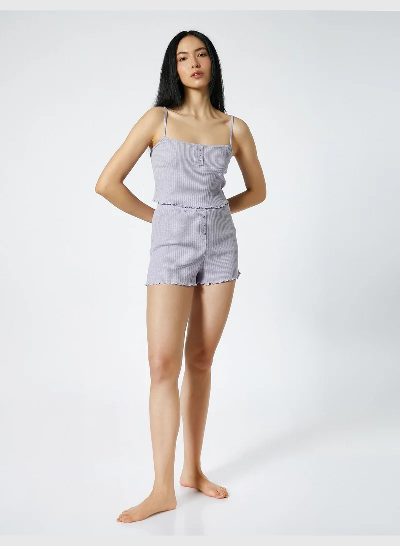 KOTON Ribbed Button Detail Mini Shorts Pyjama Bottom