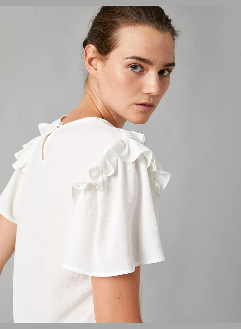 KOTON Short Sleeve Crew Neck Frilled Blouse
