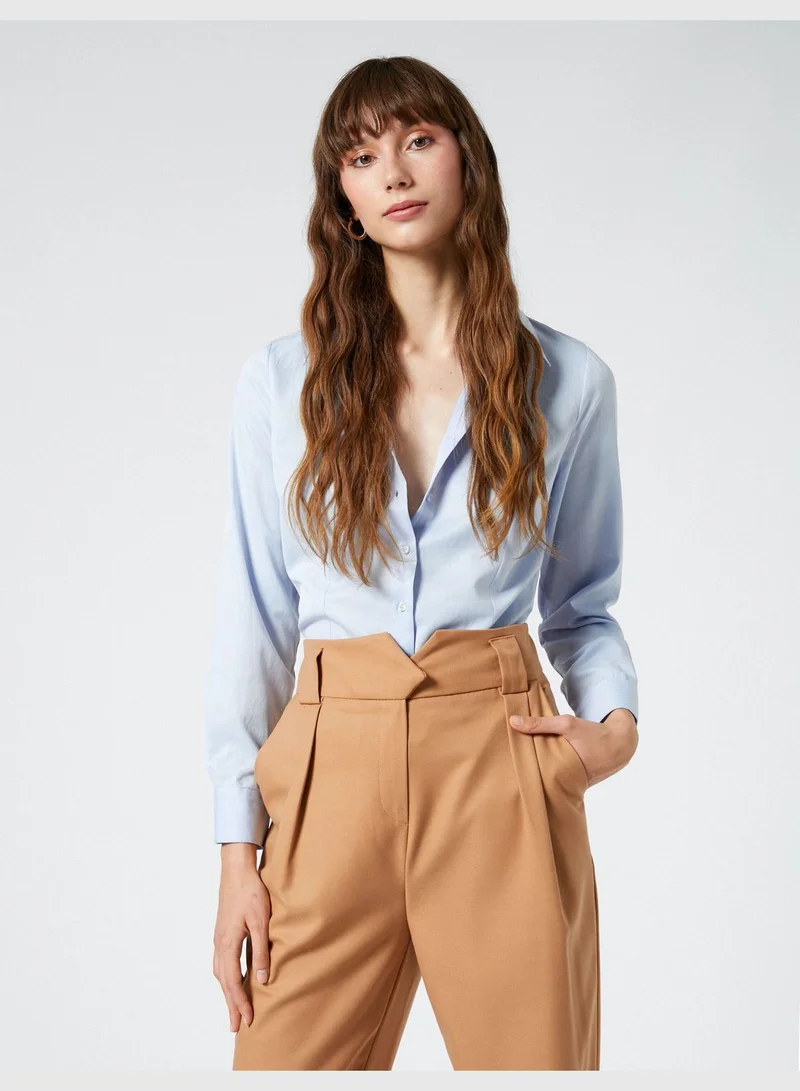 KOTON Slim Fit Long Sleeve Button Detail Classic Shirt