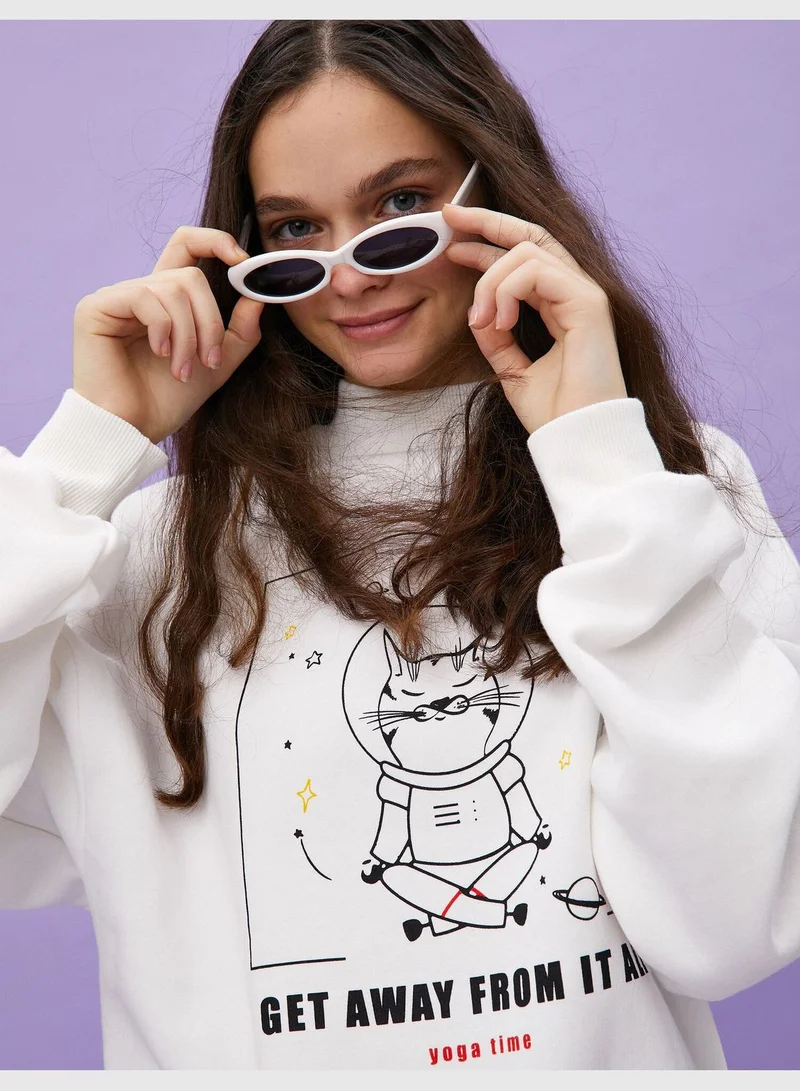 Dik Yaka Hayvan Baskılı Sweatshirt