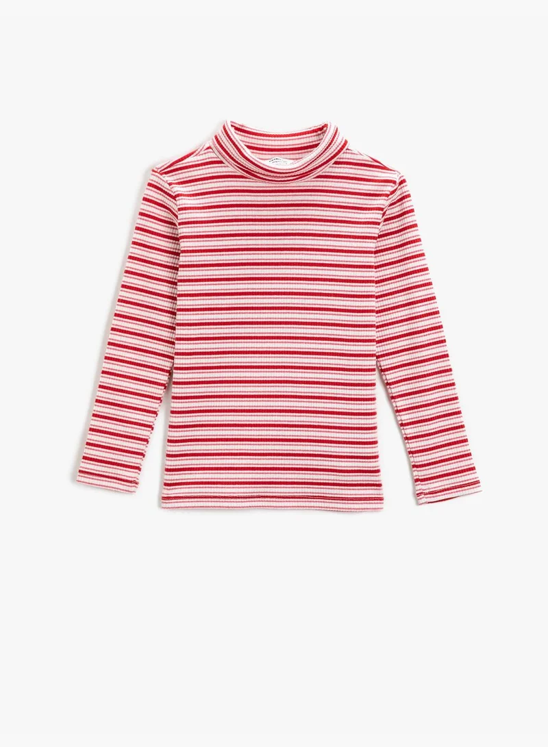 KOTON Striped Half Turtleneck T-Shirt Long Sleeve Cotton