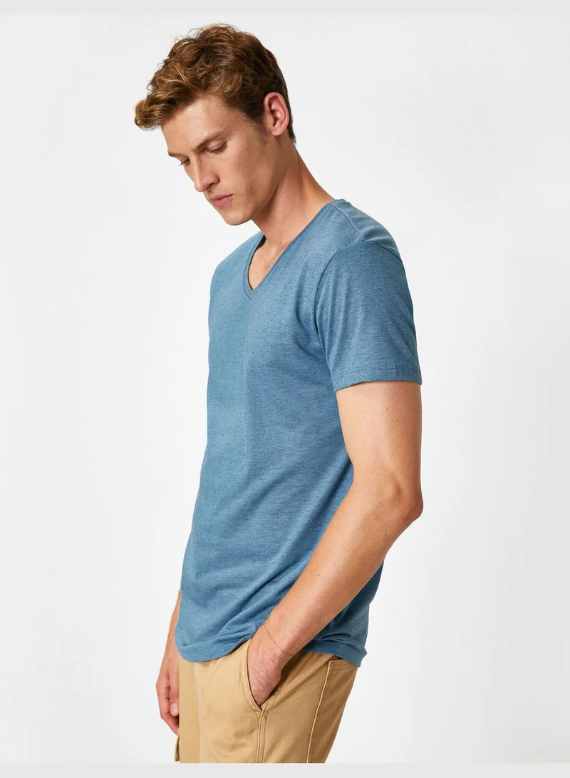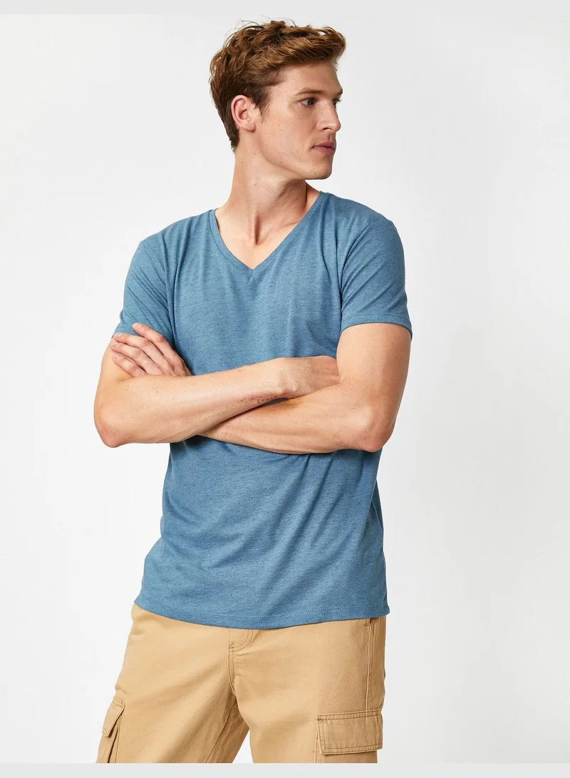 KOTON V Neck Short Sleeve Basic T-Shirt