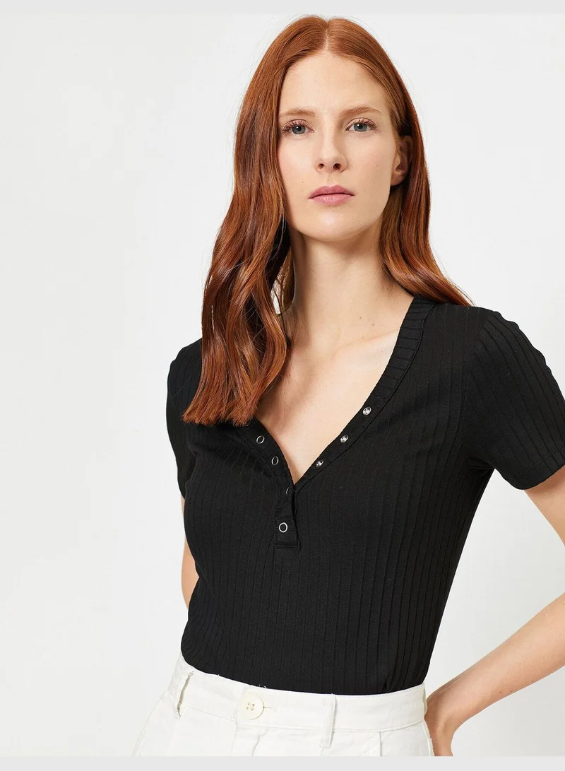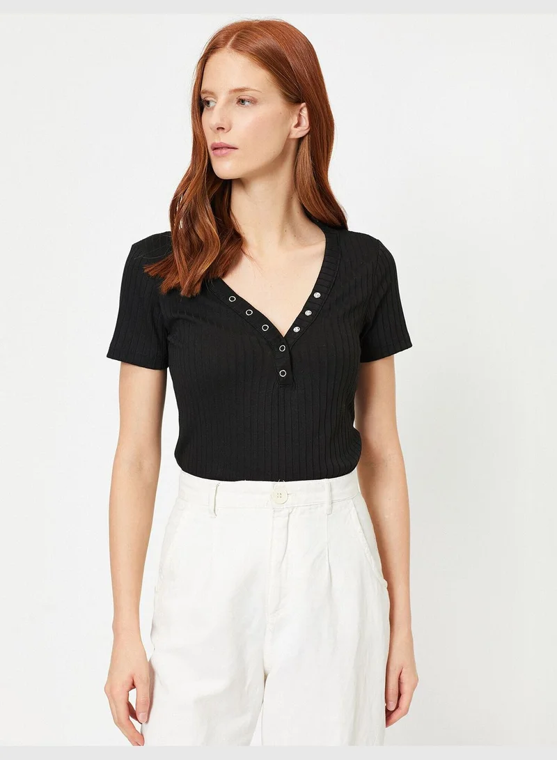 Çıtçıt Detaylı V Yaka Tişört