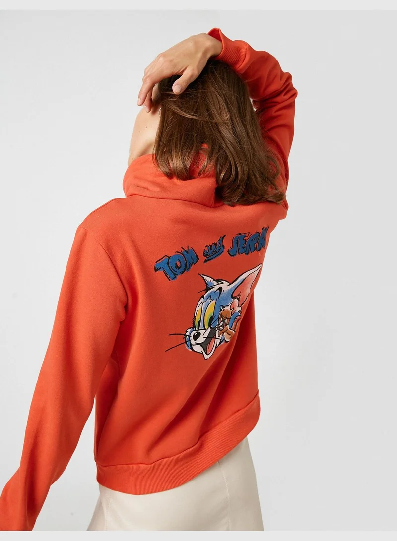 KOTON Warner Bros Licensed Tom & Jerry Printed Hooded Sweatshirt