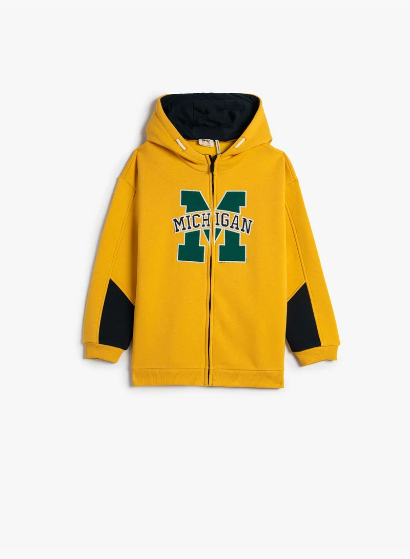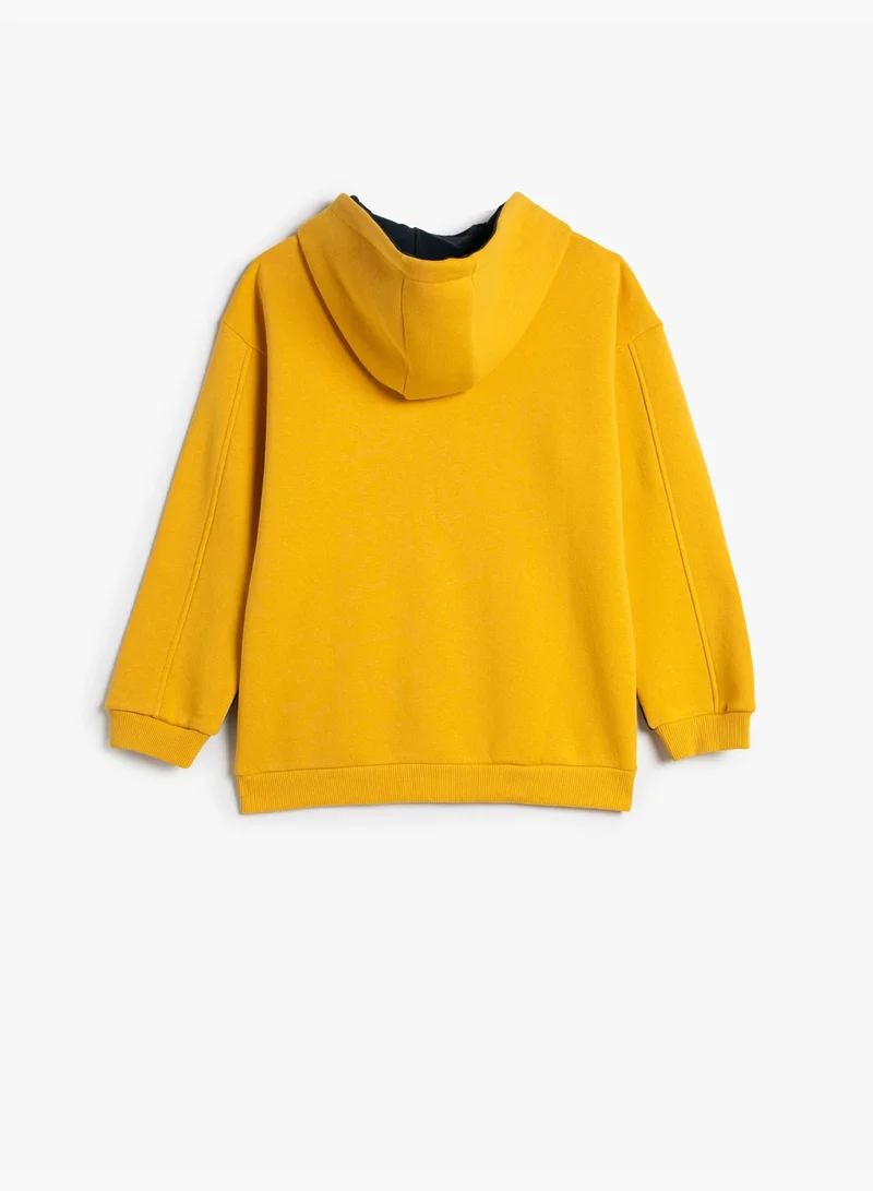 KOTON Zipper Hooded Sweatshirt Embroidered Brushed Interior Cotton