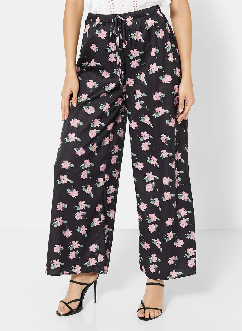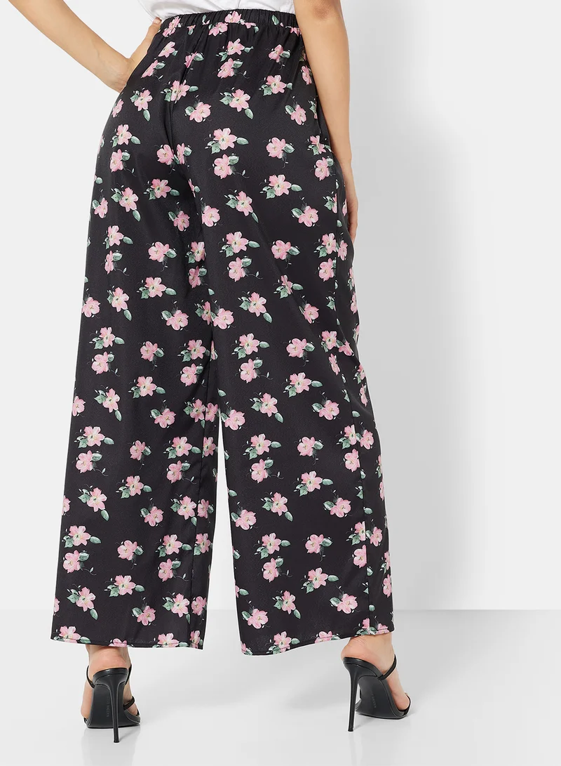 LABEL RAIL Floral Print Wide Leg Pants Black