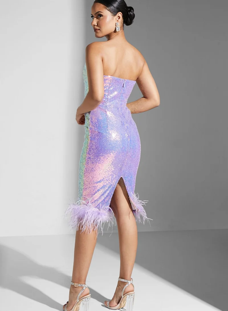 lavish alice Bardot Fringe Hem Sequin Detail Dress