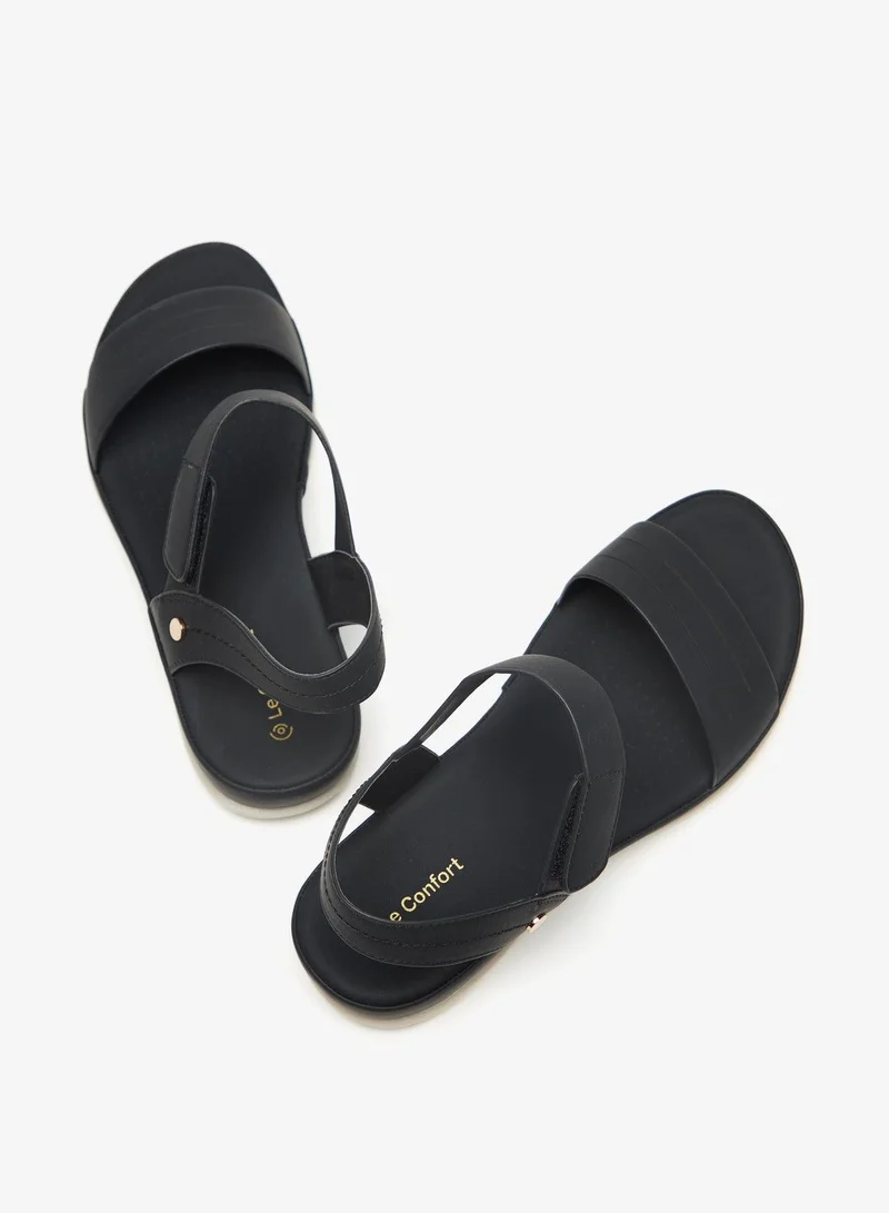 Le Confort Solid Open Toe Sandals with Hook and Loop Closure