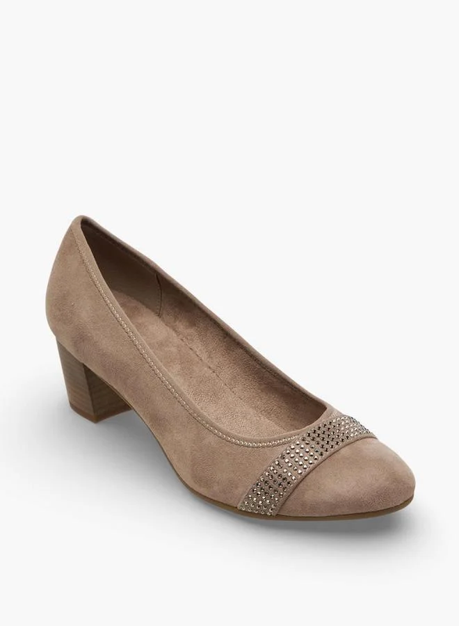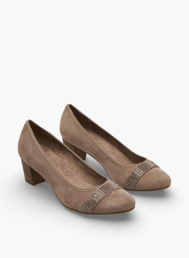 Step into sophistication with these elegant block heel pumps, perfect for adding a touch of glamour to your ensemble. Crafted with a soft suede-like finish, these women's block heel shoes feature a comfortable design suitable for extended wear. The subtle embellishment across the vamp provides a chic detail, making these embellished block heel shoes a versatile choice for both casual and formal occasions. Pair them with a tailored dress or smart trousers for a polished look.