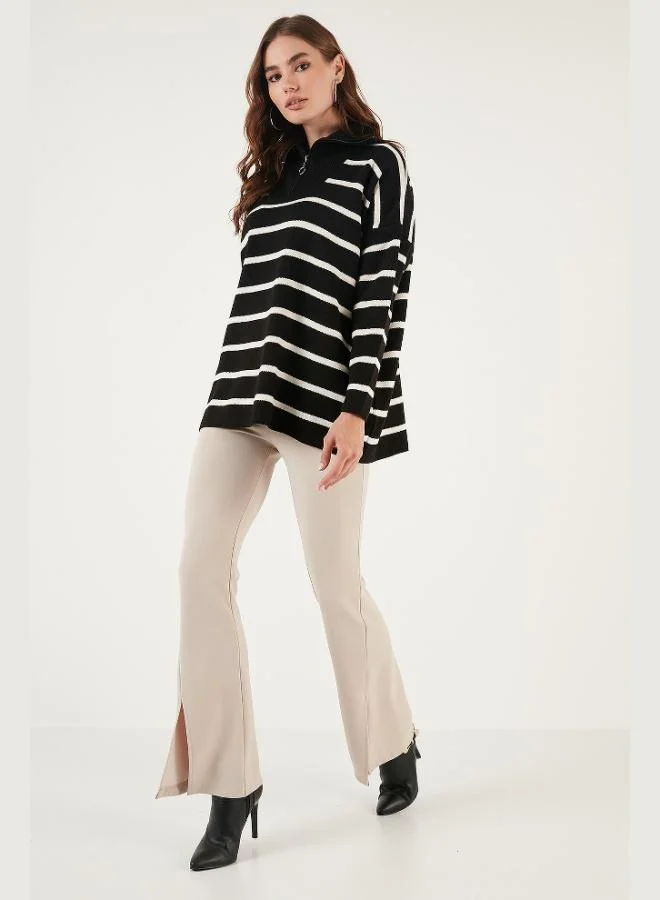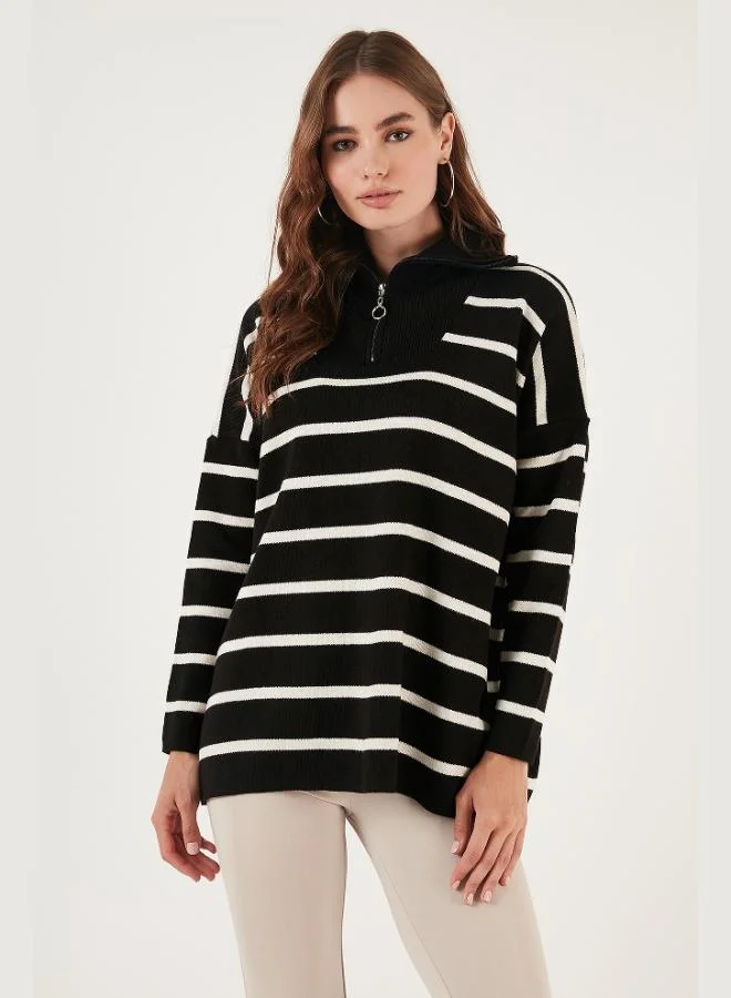 Lela Lela Striped Half Zipper Oversize Knitwear Sweater Women's SWEATER 4616080