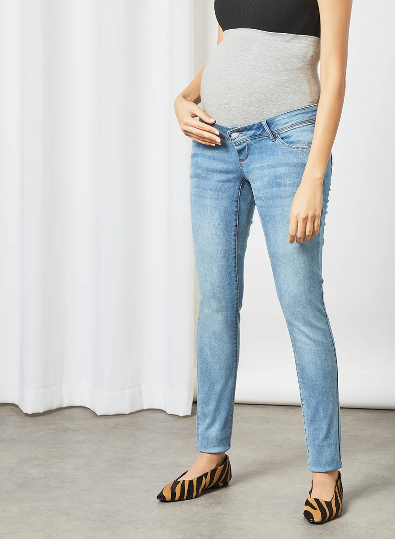 Mamalicious Paso Slim Fit Maternity Jeans Light Blue