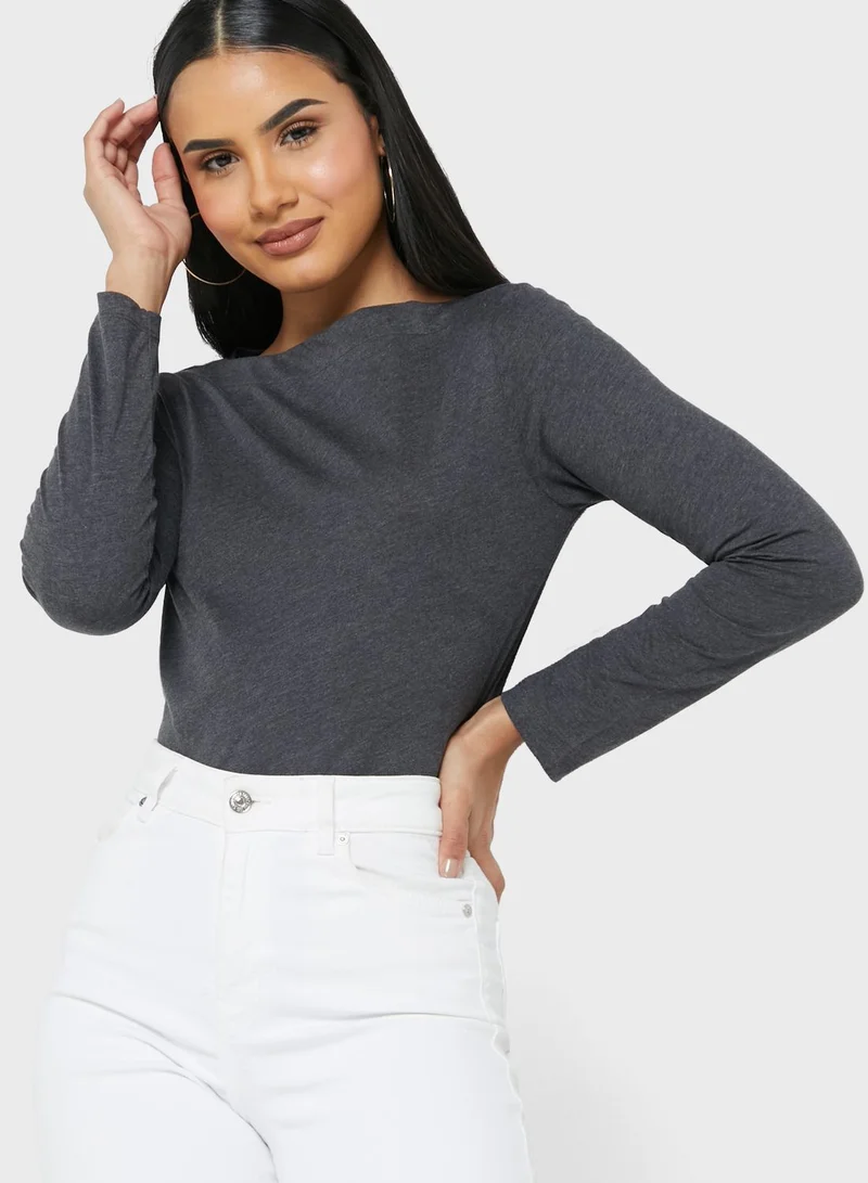 • Boat neck and long sleeves