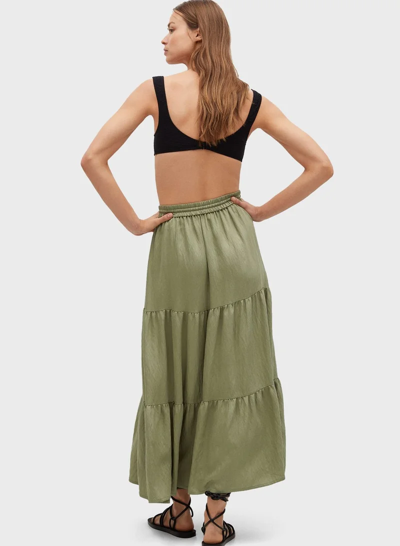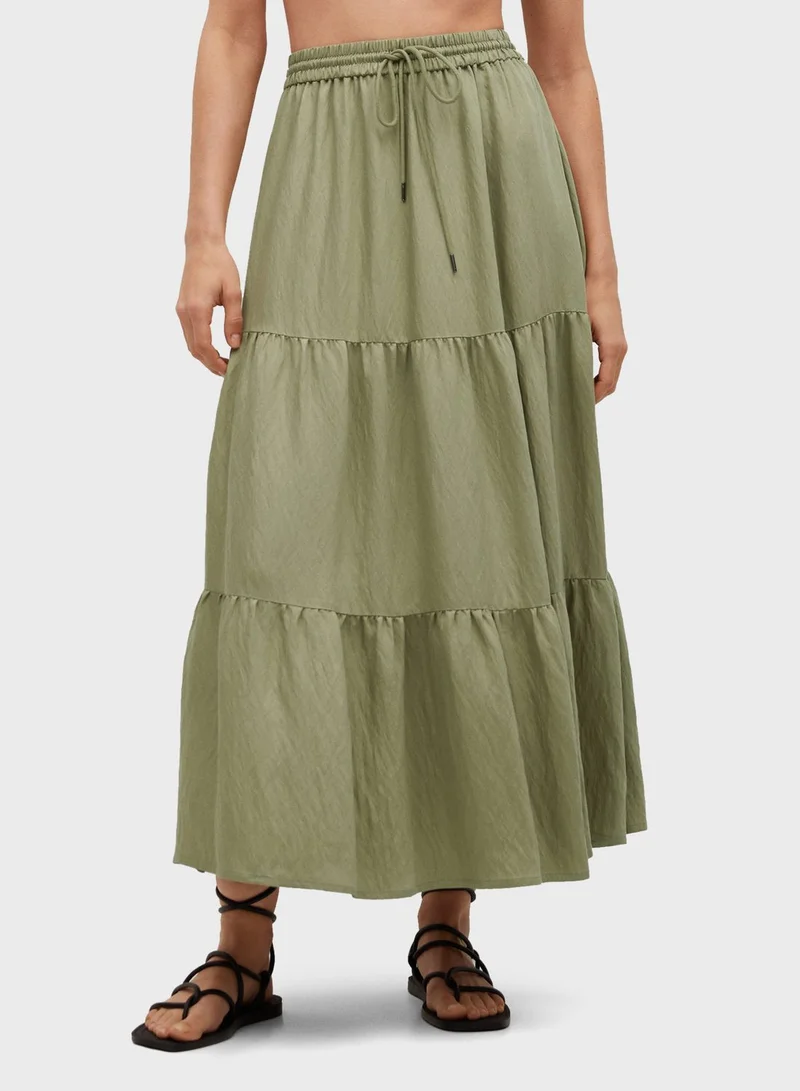 MANGO Drawstring Waist Tiered Skirt