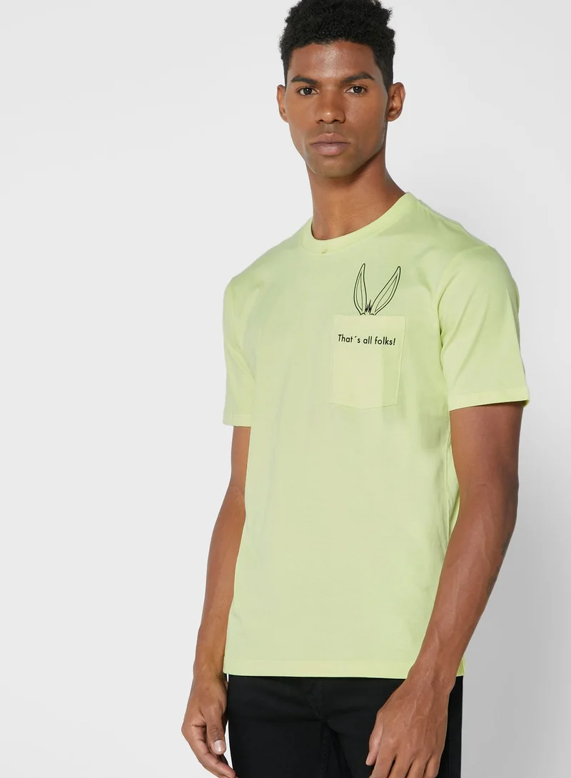 Mango Man Folk Crew Neck T-Shirt