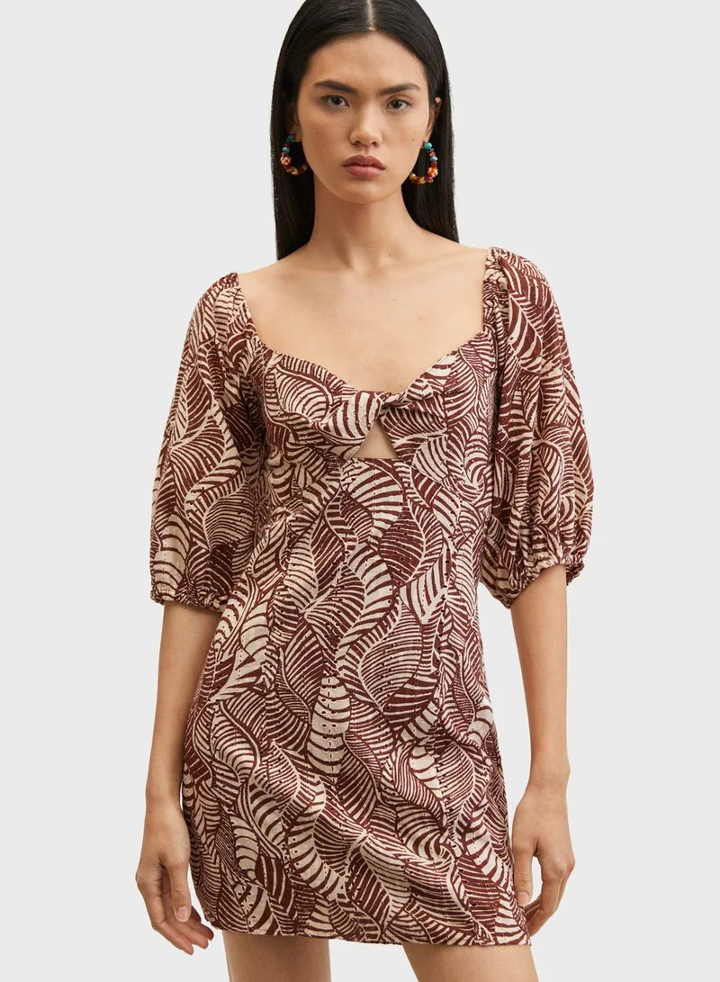 MANGO Printed Puff Sleeve Dress