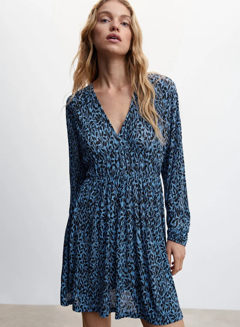 MANGO Ruched Waist Floral Print Dress