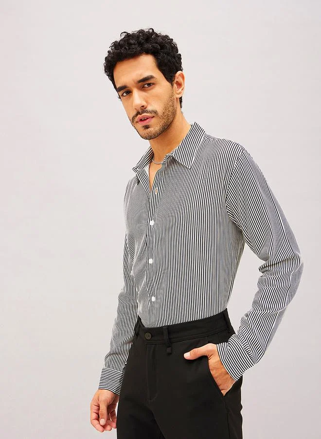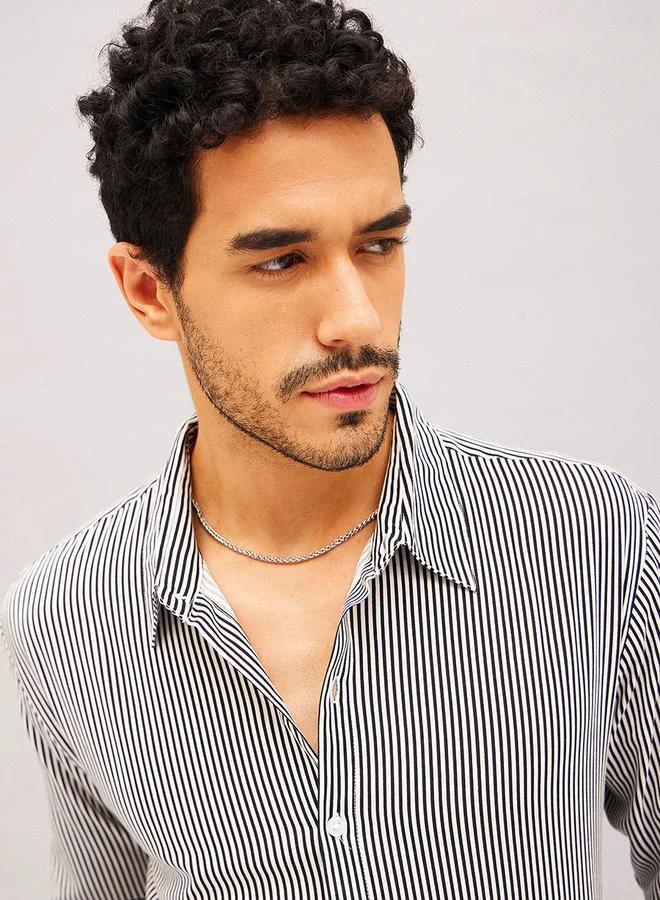 Striped Long Sleeve Relaxed Fit Shirt by Styli