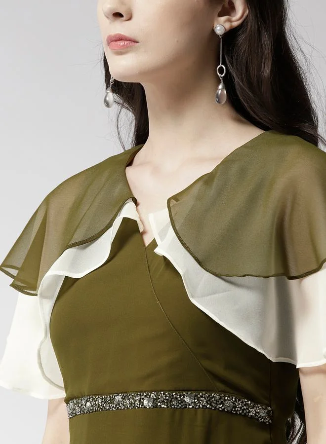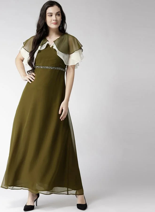 Mish Solid Georgette A-Line Maxi Dress with Cape Sleeve by Styli