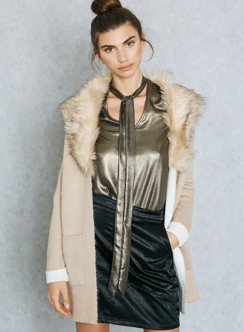 • Notched faux fur collar neck