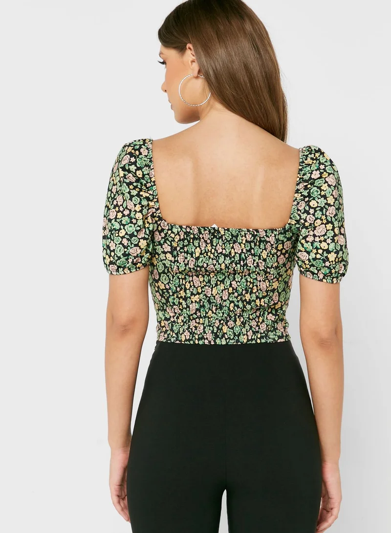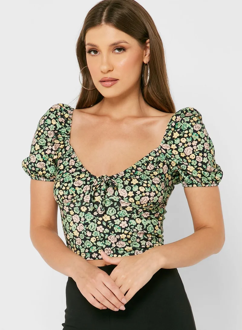 Miss Selfridge Tie Detail Puff Sleeve Crop Top