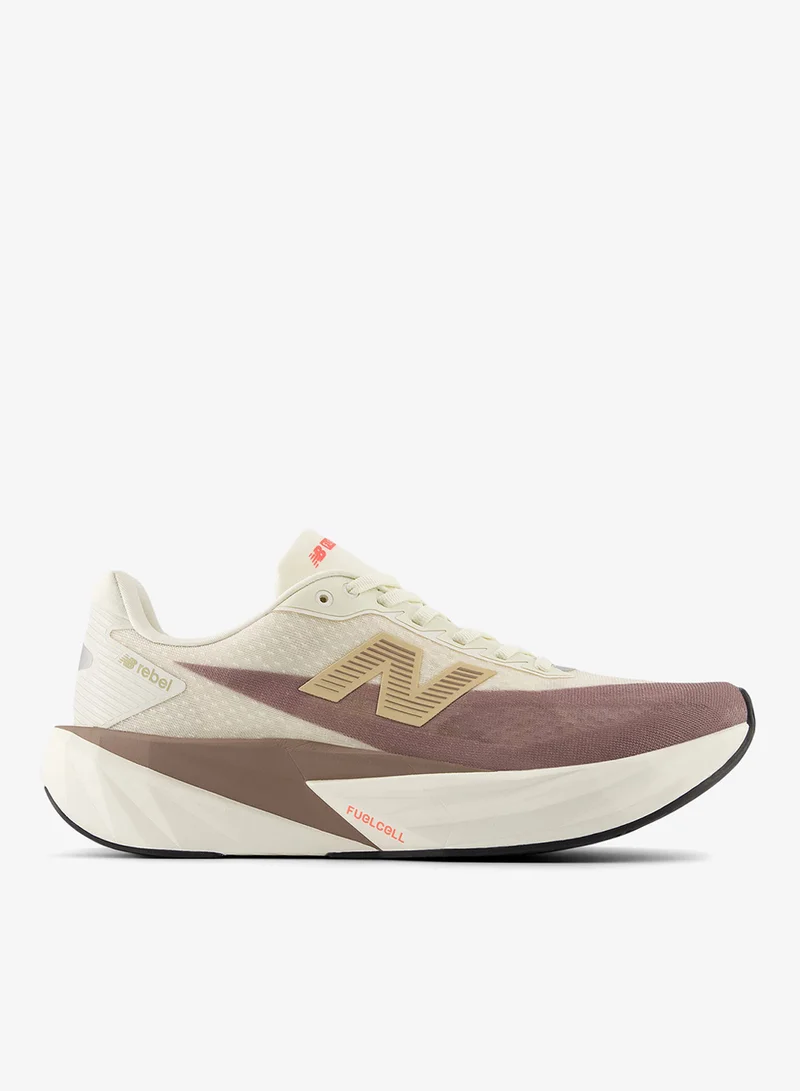 Power your pace in the New Balance Women's FuelCell Rebel v5 Running Shoes, featuring a breathable mesh upper and responsive FuelCell midsole—ideal for everything from steady miles to quick bursts.Key FeaturesThese New Balance women's shoes are ideal for runningFantomFit upper offers ultra-light bonded supportPEBA/EVA foam blend provides durable, lightweight cushioning and a fast underfoot feelFuelCell foam offers an energetic feel to help drive you forward with every strideDurable rubber outsole for tractionMore DetailsPadded ankle collar delivers plush comfortLace closure provides a secure fitNew Balance logo on the women's FuelCell Rebel v5 running shoes offers a premium lookWeight: 180g