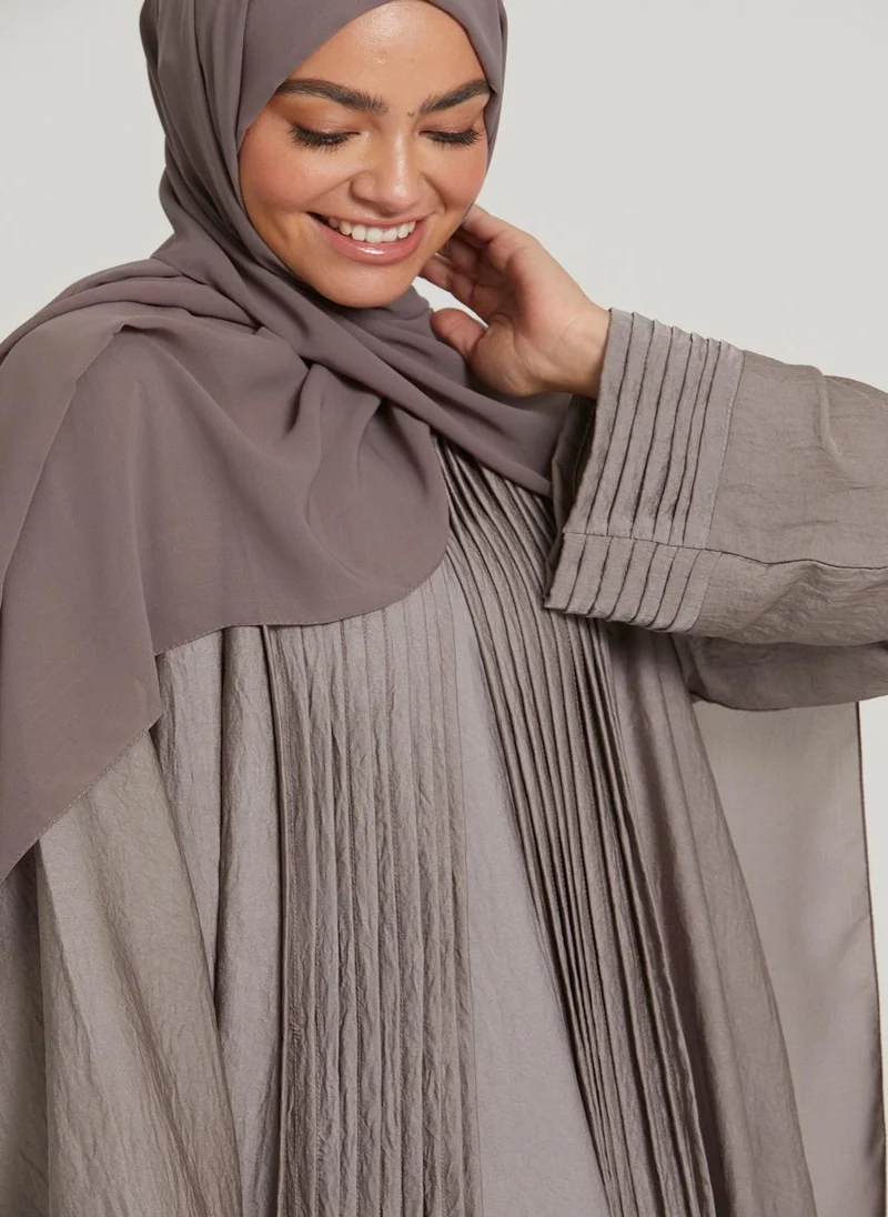 NUKHBAA Brown Pleated Women's Abaya with Hijab