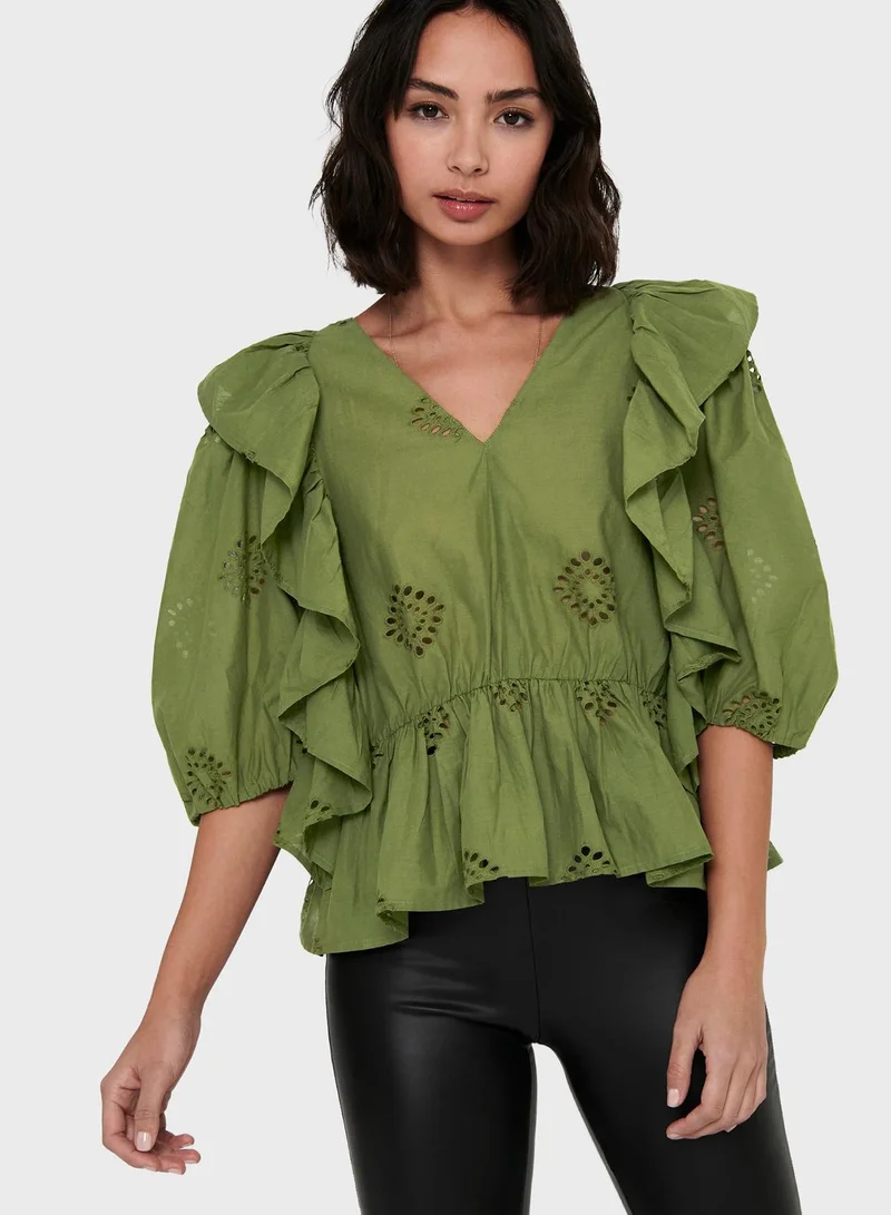 ONLY V-Neck Broderie Detail Top