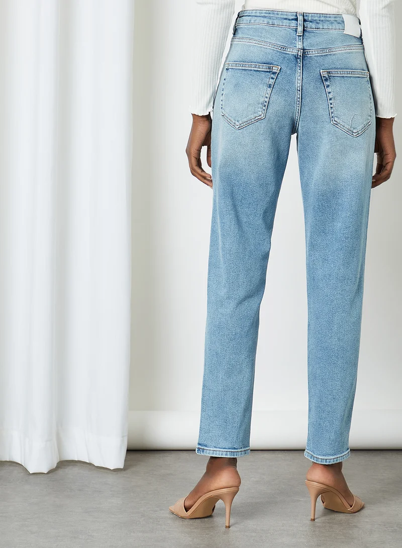 Washed Mom Jeans Light Blue Denim