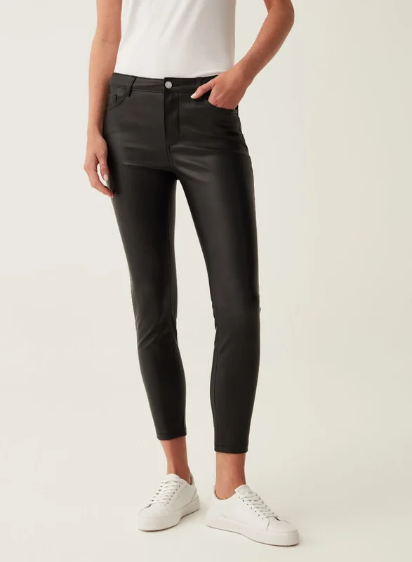 Ovs Cropped skinny-fit shiny-effect trousers