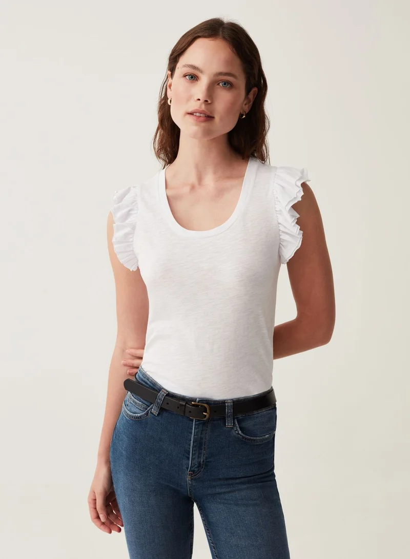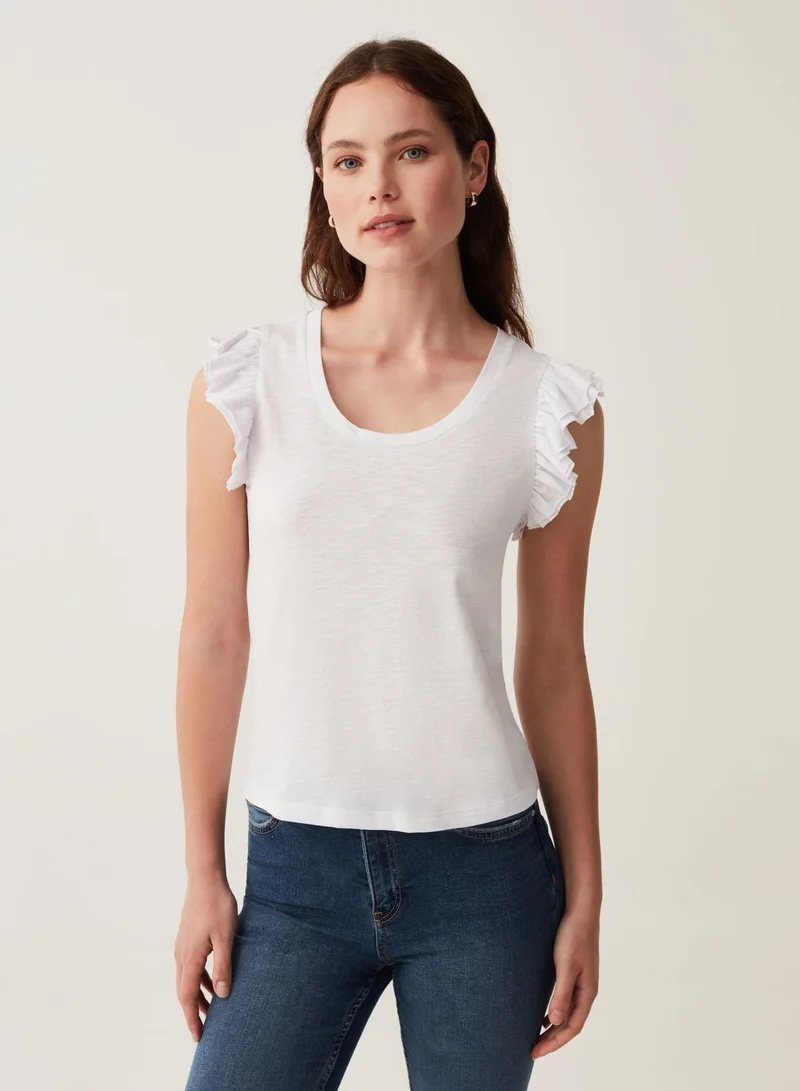 OVS Tank Top In Slub Cotton With Flounce