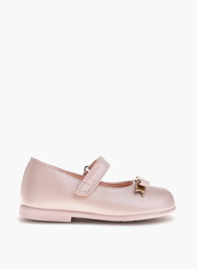Pablosky Girls' Bow Accent Mary Jane Shoes with Hook and Loop Closure