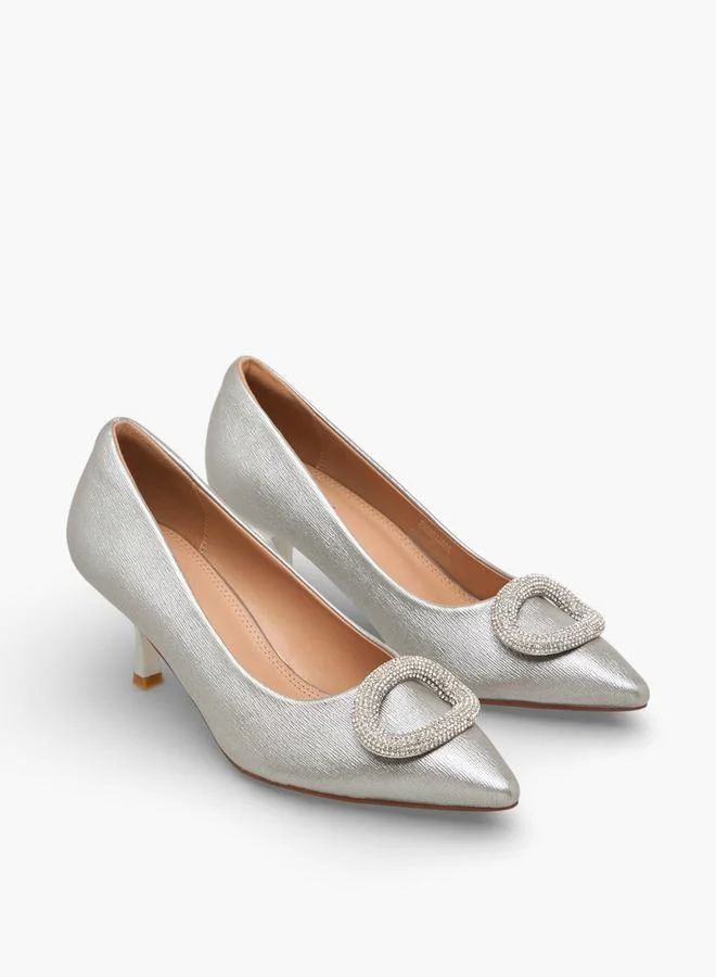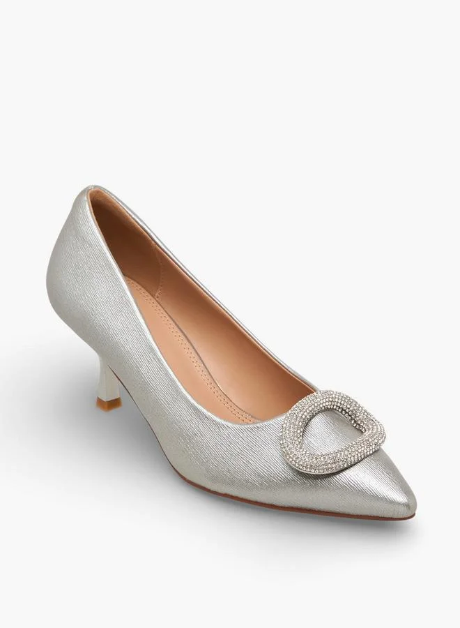 These elegant pumps feature a sophisticated pointed toe and a glamorous embellished accent, perfect for enhancing any evening ensemble. The comfortable heel provides subtle elevation, making them ideal for extended wear at special events. This stylish pair offers a refined aesthetic, ensuring you make a confident statement. Complete your look by pairing these versatile shoes with a matching clutch or delicate jewellery.
