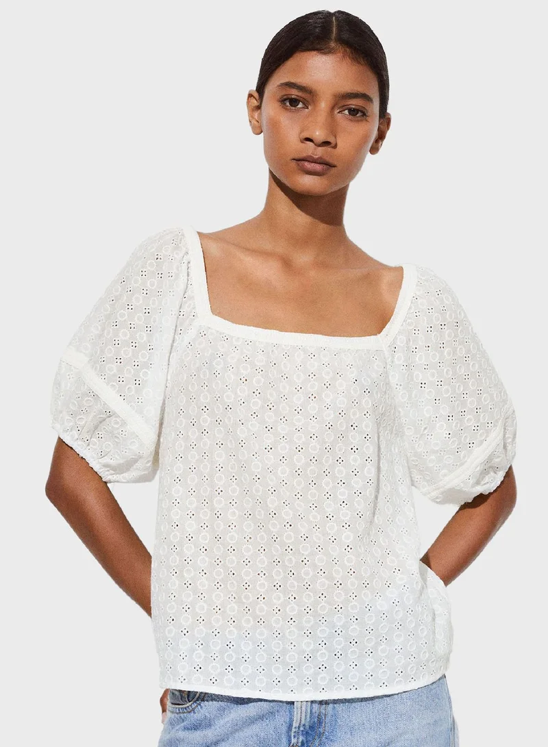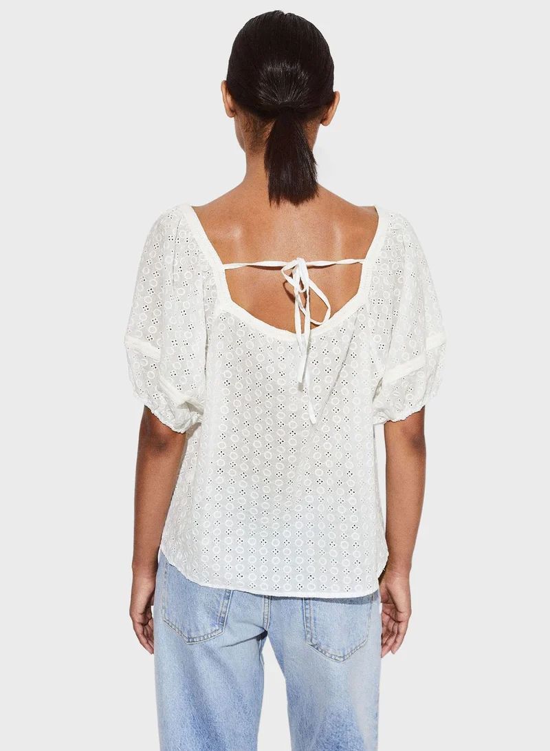 Openwork Puff Sleeve Top