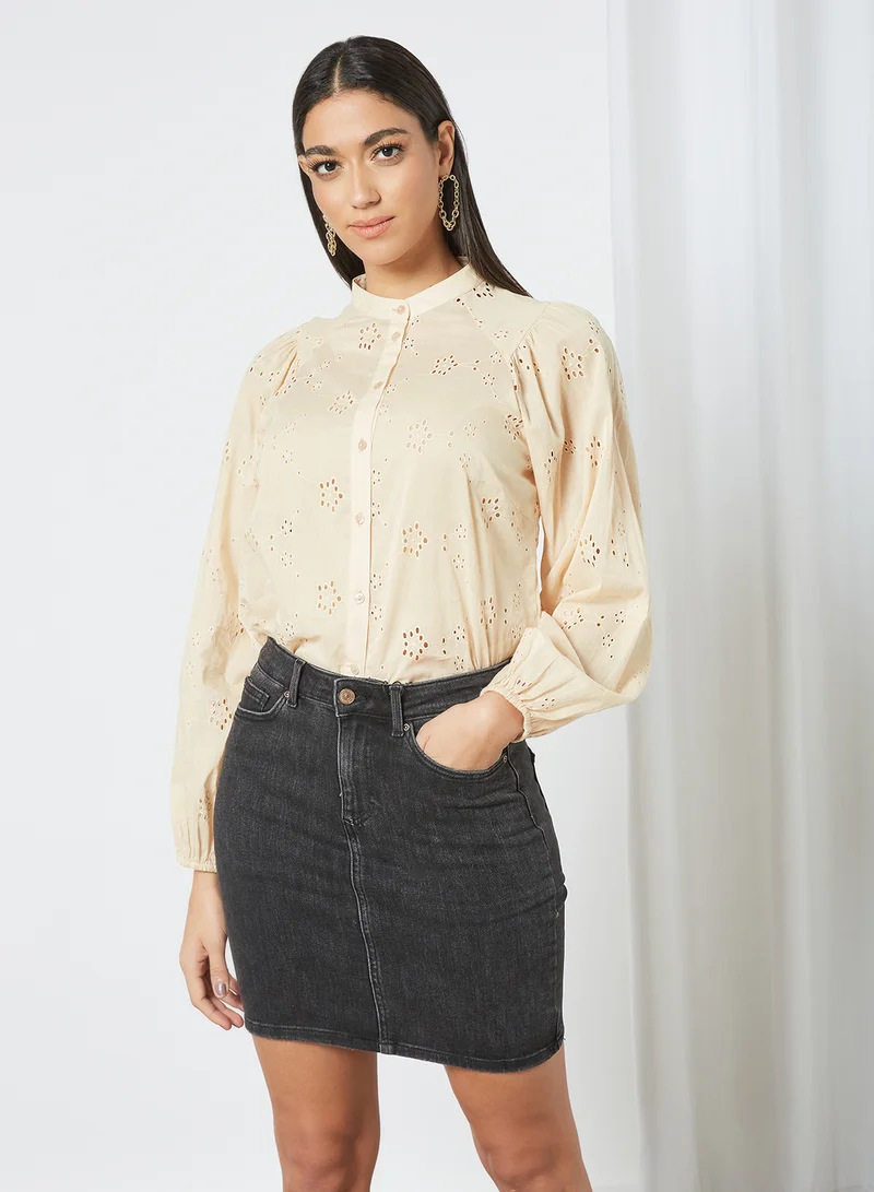 PIECES Broderie Shirt Brown
